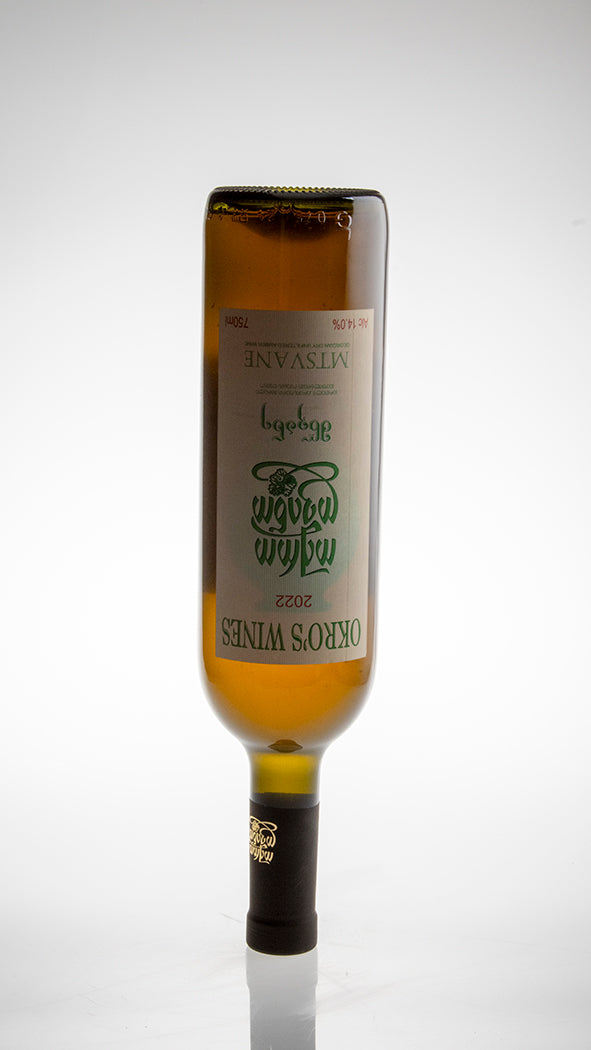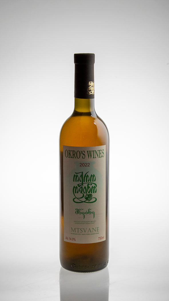 Denne vin er Okro’s fortolkning af den klassiske georgiske drue Mtsvane, dyrket i Kakheti og vinificeret efter traditionel qvevri-metode. Druerne gæres og macererer i nedgravede lerkar, hvilket gør vinen til en struktureret orangevin med naturlig tannin og tydeligt terroirpræg. Produktionen følger Georgiens ældgamle vintradition med spontan gæring og minimal intervention.